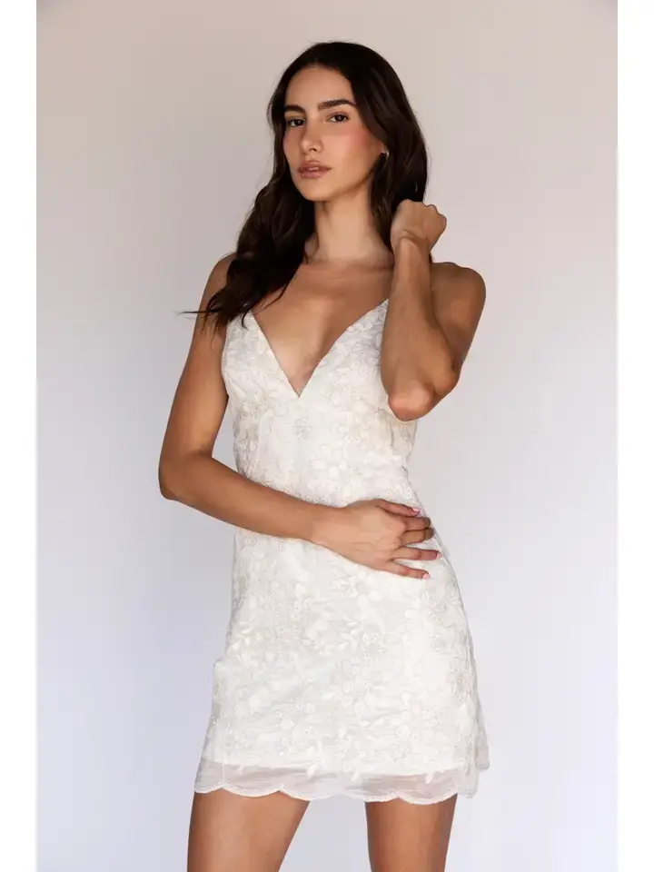 Sweeden Back Tie Detail Floral Lace Mini Dress