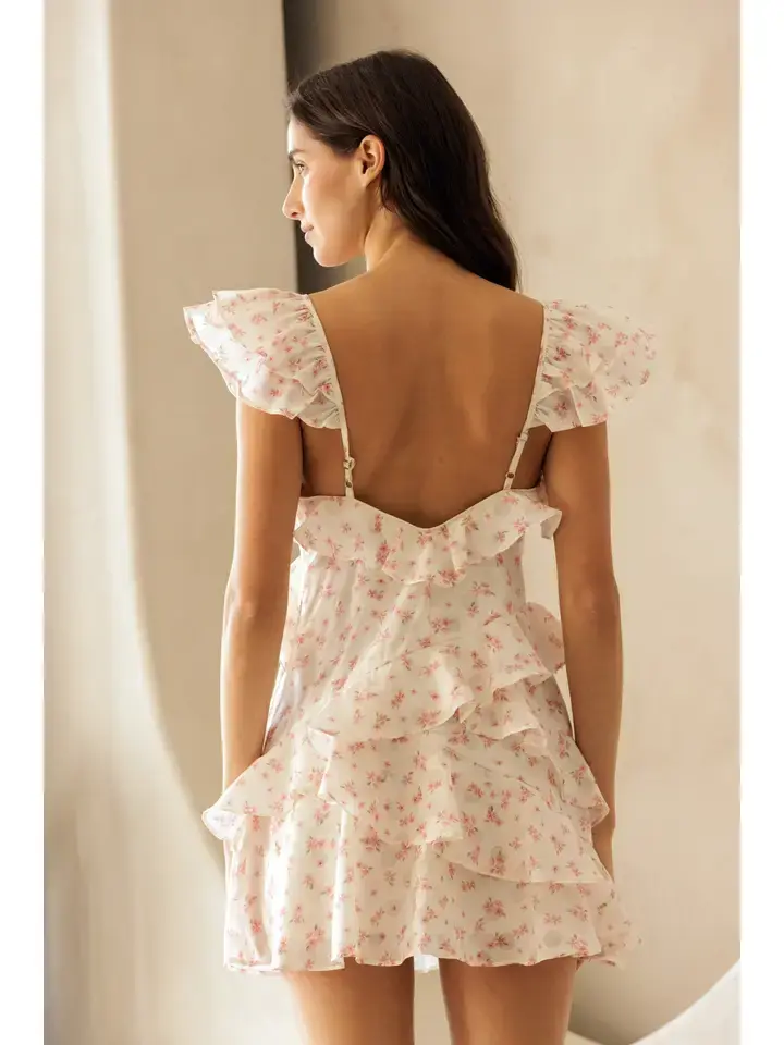 Maddie Pink Floral V Neck Layered Ruffle Dress
