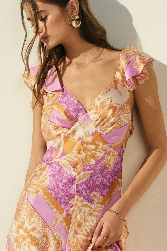 Riviera Bloom Flutter Detail Open Back Maxi Dress
