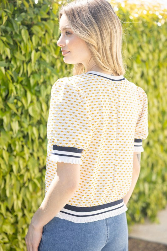 Aurora Stripe And Heart Shaped Puff Sleeve Top