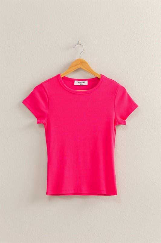 Let's Bring It Back To The Basics And Look Good Doing It. This Top Has A Ribbed Construction, Shaping A Crew Neck, Short Sleeves And A Flattering Fit To Enhance The Look Of Your Natural Feminine Structure. Pair With Shorts. 95% Cotton 5% Spandex Model Is 5' 9" Tall, 32" Chest, 23" Waist, 35" Hips And Wearing A Size Small