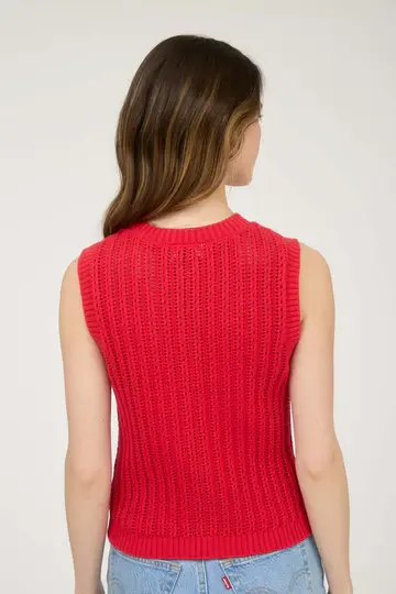 CREW NECKLINE SLEEVELESS BUTTON DOWN CROCHET SWEATER KNIT RIBBED TRIM SOLID NOT LINED CARDIGAN VEST 100% COTTON