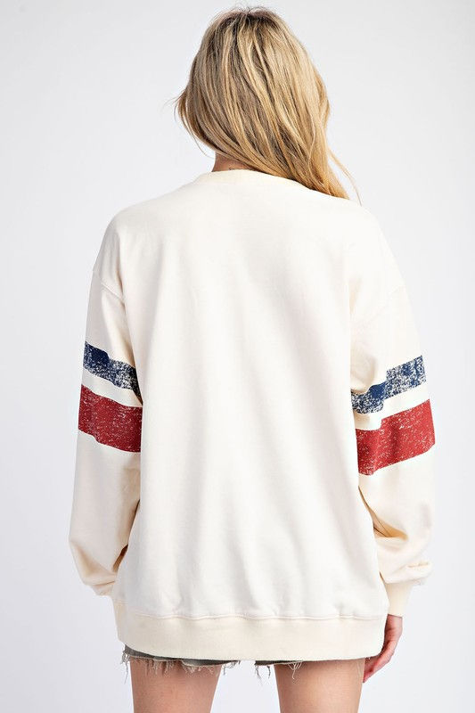 Vintage "Game Day" long sleeve pullover top featuring a banded cuffs, a rounded neckline, a bottom band and is a relaxed fit silhouette.
