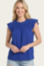 + Ruffle neck sleeveless top + High ruffled neck + Ruched detail on front yoke + Keyhole back with button closure + A-line silhouette + Model is 5' 9" 33-25.5-36 and wears a S 100% POLYESTER