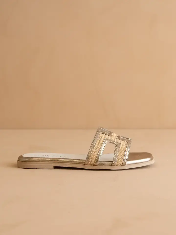 Effortless summer styling starts here. The Ena blends breathable raffia construction with a bold H-shaped cutout, creating a minimalist yet striking slide. Complete with our signature DreamCloud cushioned sole for all-day comfort. Materials: * Upper Material: Raffia Upper * Insole Material: DreamCloud Cushion * Sole or Heel Material: Rubber Outsole Details: * Brand: Oasis Society * Heel Height: 0.50'' * Types of Closures: Slip On *